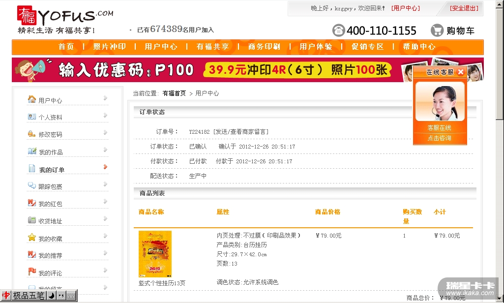 2、2012年12月末参加有福送台历活动中获得了最佳回帖奖,获得”个性定制挂历一份(现正生产中,等邮到,再晒图),