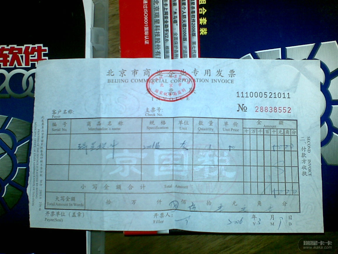 好像是05年底吧,由于重装电脑系统后,旧的软盘损坏不能安装瑞星杀毒软件。抱着试试看的心理给北京瑞星公司打去电话咨询,工程师说让我把旧的正版软件加50元钱一同寄回公司就可换新版杀毒软件。