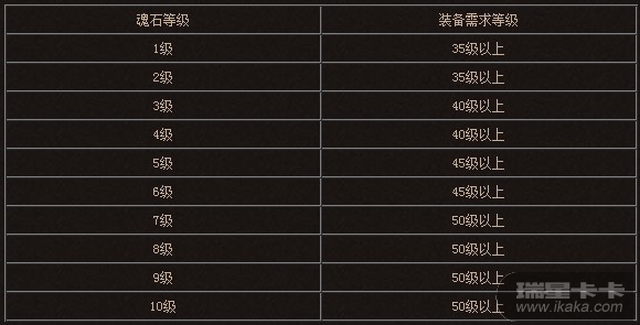 不同等级的魂石属性需要不同等级的装备才能进行激活,例如1级魂石需要35级以上装备才能正确激活魂石所带效果。