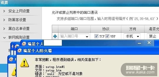 瑞星防火墙2012 设置里的端口规则设置里超过10条时 拉动滑动条时会报错