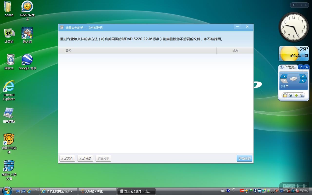 我的瑞星安全助手无法正常使用鼠标右键来添加要粉碎的文件,如图: