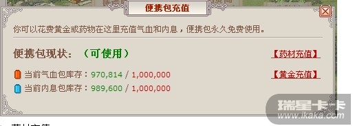 药材充值玩家可以通过点击【药材充值】将背包中药材增加的气血/