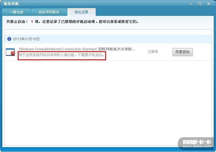 如图:一键优化后,重启,弹出气泡提示win防火墙已关闭。