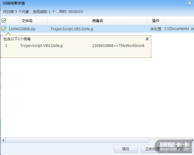 trojan.script.vbs.dole.a 病毒有这个病毒的文件通过OA软件上传服务器,上传后变成压缩文件,用新版V16直接扫描这个压缩文件,查不到有病毒,