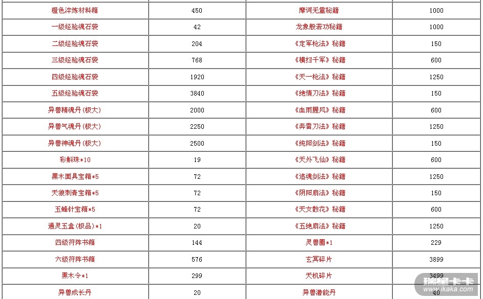 造化丹大*20、兽魂丹超大*2、九级经验魂石*1、玄冥宝石*1