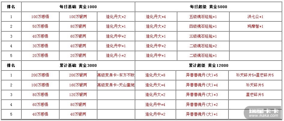 造化丹大*1、兽魂丹大*2、五级经验魂石*1、100万感悟