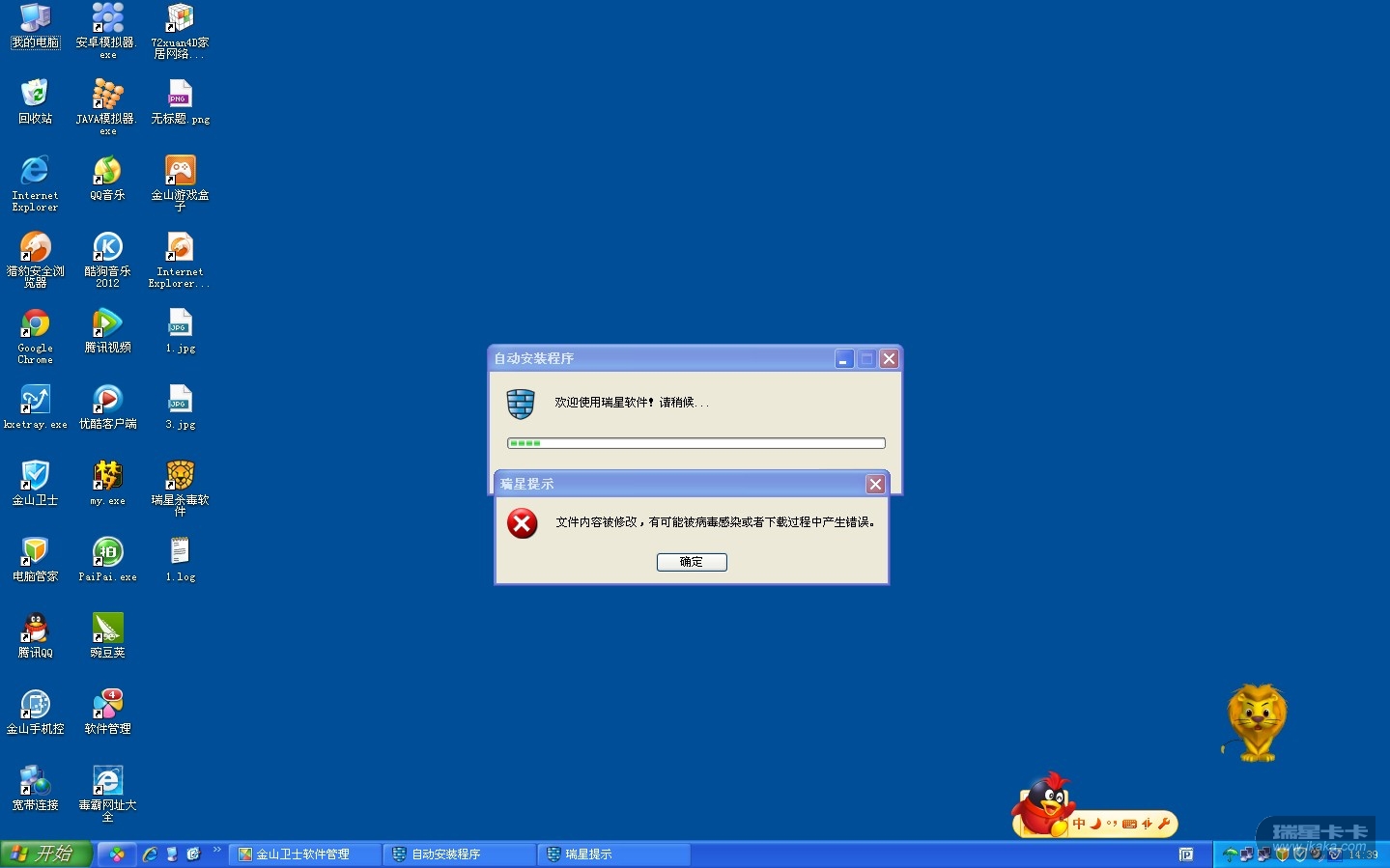 安装瑞星个人防火墙2012出现瑞星提示:文件内容被修改,有可能被病毒感染或者下载程序中产生错误!求解决!