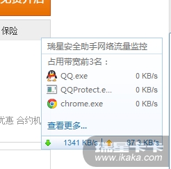 流量监控条那里可以显示总流量,各个程序使用流量明细那里都为0