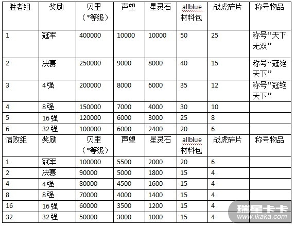 赛制同服内王者之战海选阶段,即报名的人决出新世界与伟大航路32强。