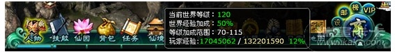 2)处于世界等级经验加成BUFF下,在游戏中获取的经验值(如副本打怪,吃经验药,任务,运镖等)加成50%(在常规经验加成的基础上再加成,例如:服用寂灭丹后的VIP7玩家,打怪获取经验为,3*1.8=5.4倍经验加成,则世界等级加成BUFF下最后加成50%,即3*1.8*1.5=8.1倍经验加成)。