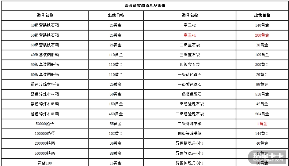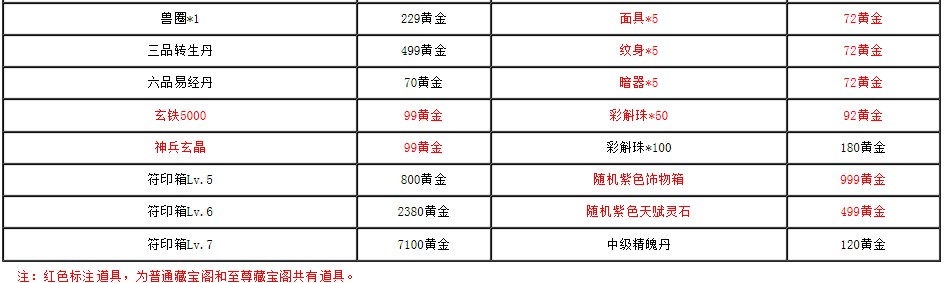 以下为普通藏宝阁和至尊藏宝阁中将会出现的道具: