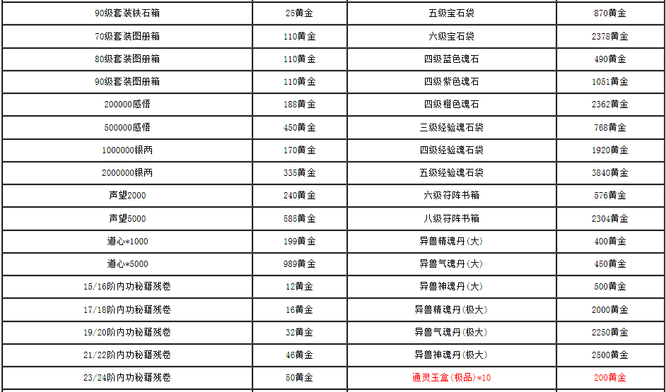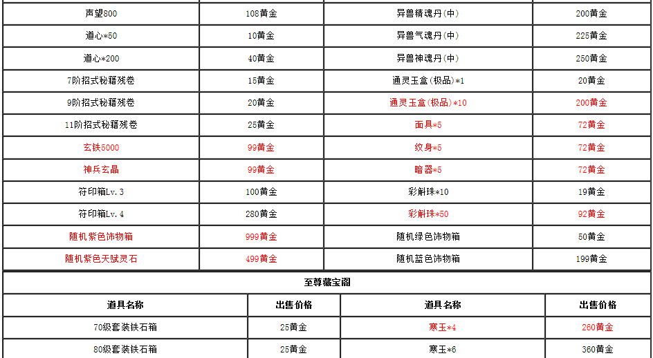 藏宝阁刷新加速及道具购买均只可使用黄金。