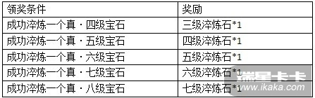 活动期间,玩家每淬炼成功一个指定级别的真·宝石,即可获得系统赠送的好礼一份。