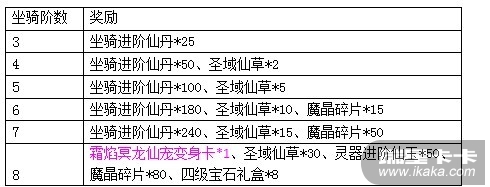 活动期间,将坐骑进阶至指定阶数,可获得额外系统赠礼。