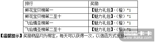 活动期间,在本服今日魅力榜、送花榜排名前三将会获得额外的排行奖励。