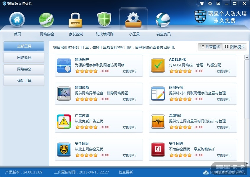 2、发现了瑞星杀毒和防火墙的字样不太统一,建议把“安全工具”、“小工具”字样统一改为“功能大全”字样;