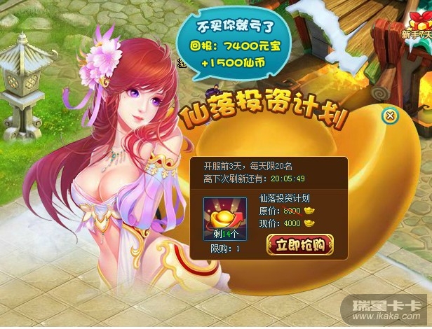 仙币总计7400元宝+1500仙币,如此丰厚的回报,购买只需4000元宝!零风险、周期短、高回报,投资计划·黄金版,懂玩的才会买哦!