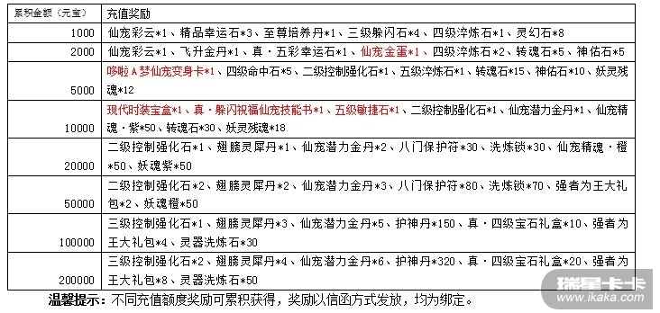 活动期间,累积充值达到指定额度,还可以获得以下超值丰厚的奖励哦!