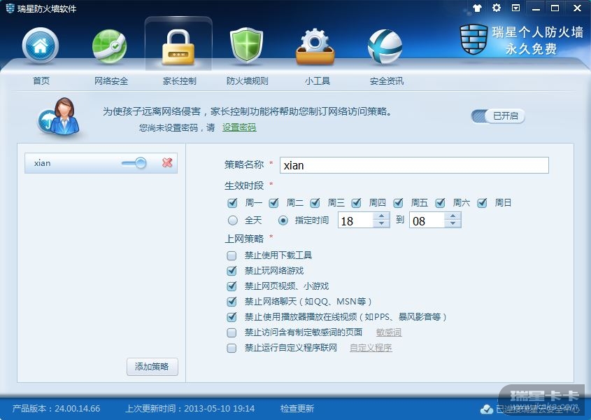 防火墙v16家长控制指定时间不能到分钟?(24.00.14.66)
