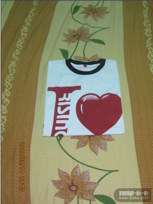我一直打算送我妈妈一件瑞星T恤,盼望几个月了,恰好前天星期天是母亲节,我就把瑞星T恤作为礼物送给我妈妈了。我妈妈昨天不在家,今天上午回家,中午穿上瑞星T恤来个真人秀。