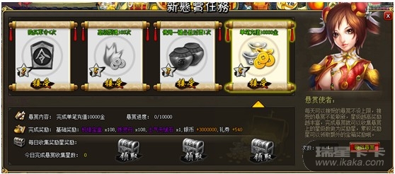 7)每完成一个悬赏任务,按完成任务的星级累积星级数,累积到一定星级获得额外奖励。