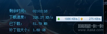 卡卡是网上下载的最新版,版本号01.00.02.43,操作系统是WIN7 64旗舰版,下载工具没有用,上边的图片是英雄联盟游戏补丁升级时的图片