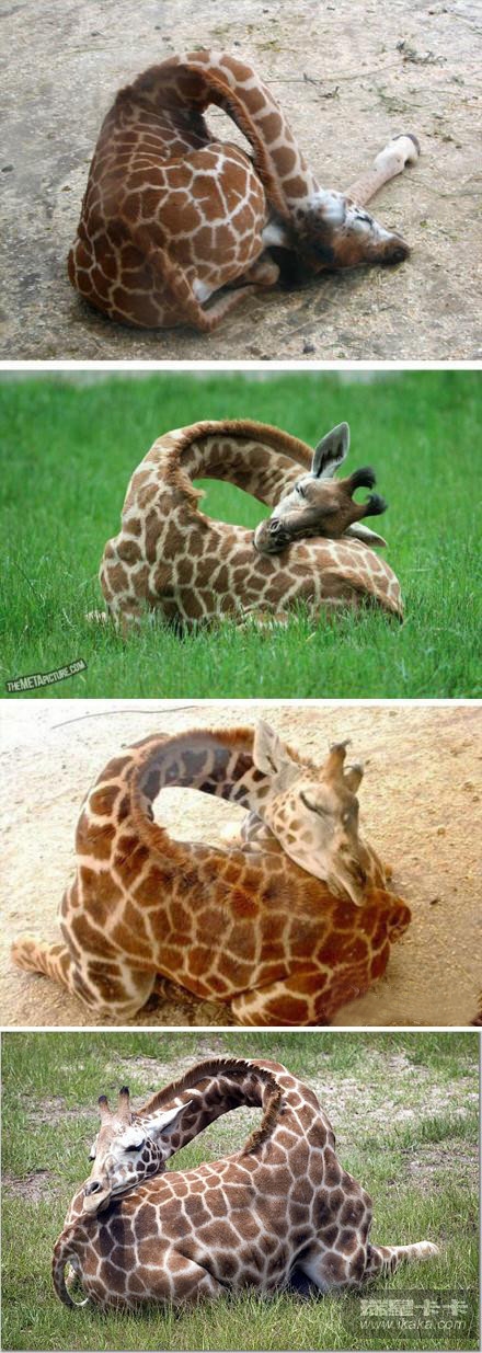 原来,长颈鹿睡觉是这样的啊!呃。。。早上起来会落枕不?!