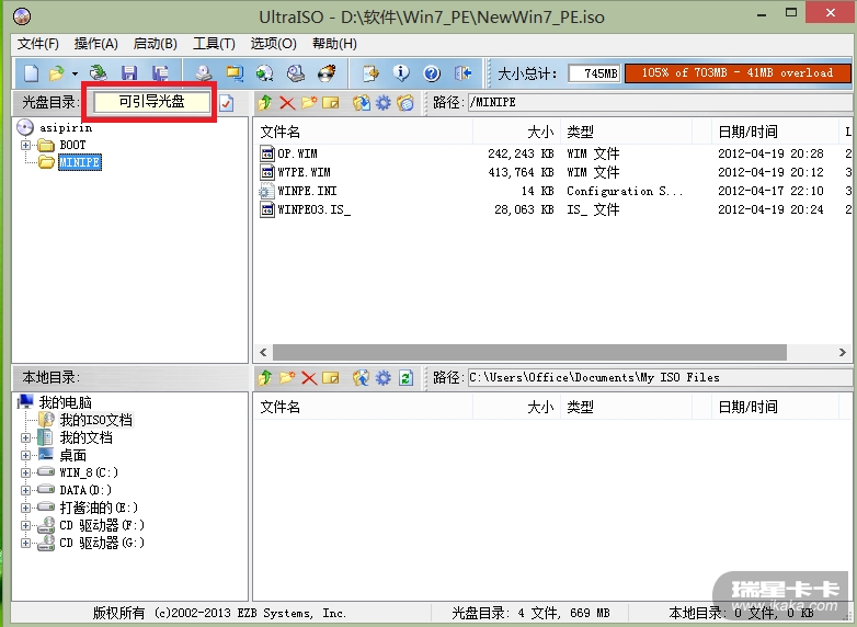 3、核实一下此Win_PE.ISO文件的类型确实是“可引导光盘”。