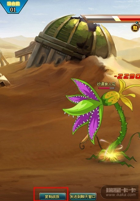 您进入任何一个副本,然后打个怪(进入战斗),在战斗画面的下方有个“复制战报”,您点一下,然后在这里按ctrl+v,然后复制给我就可以了。