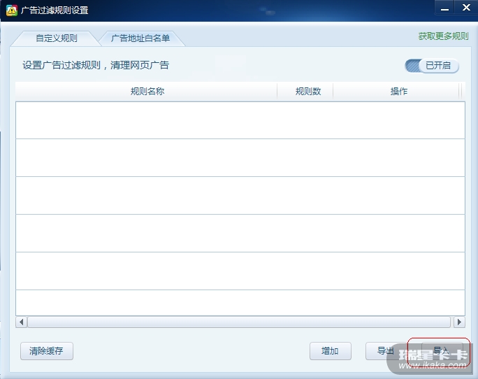 我下载了瑞星的广告过滤规则,可是无法导入啊,怎么导入广告过滤规则?