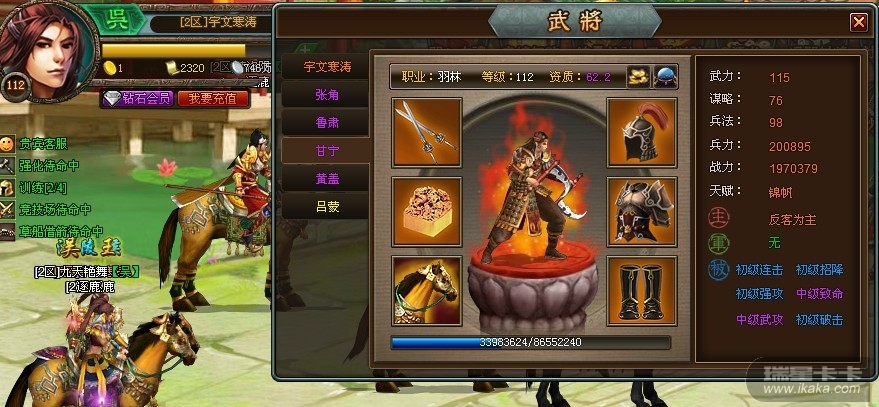 猫版你好,武将传承出现问题,传承的武将在下拉列表里没有显示(甘宁),其他的都显示正常,请版主大大帮忙查查是这么回事。我是2区宇文寒涛,谢谢!!!附图:传承界面,甘宁没有显示。
