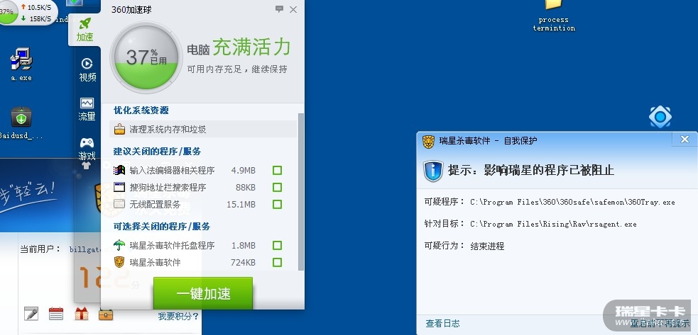 瑞星虽然有提示但是很不幸还是被结束了。。