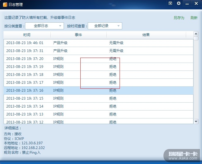 在使用瑞星个人防火墙的时候,出现了以下问题。(如图所示)