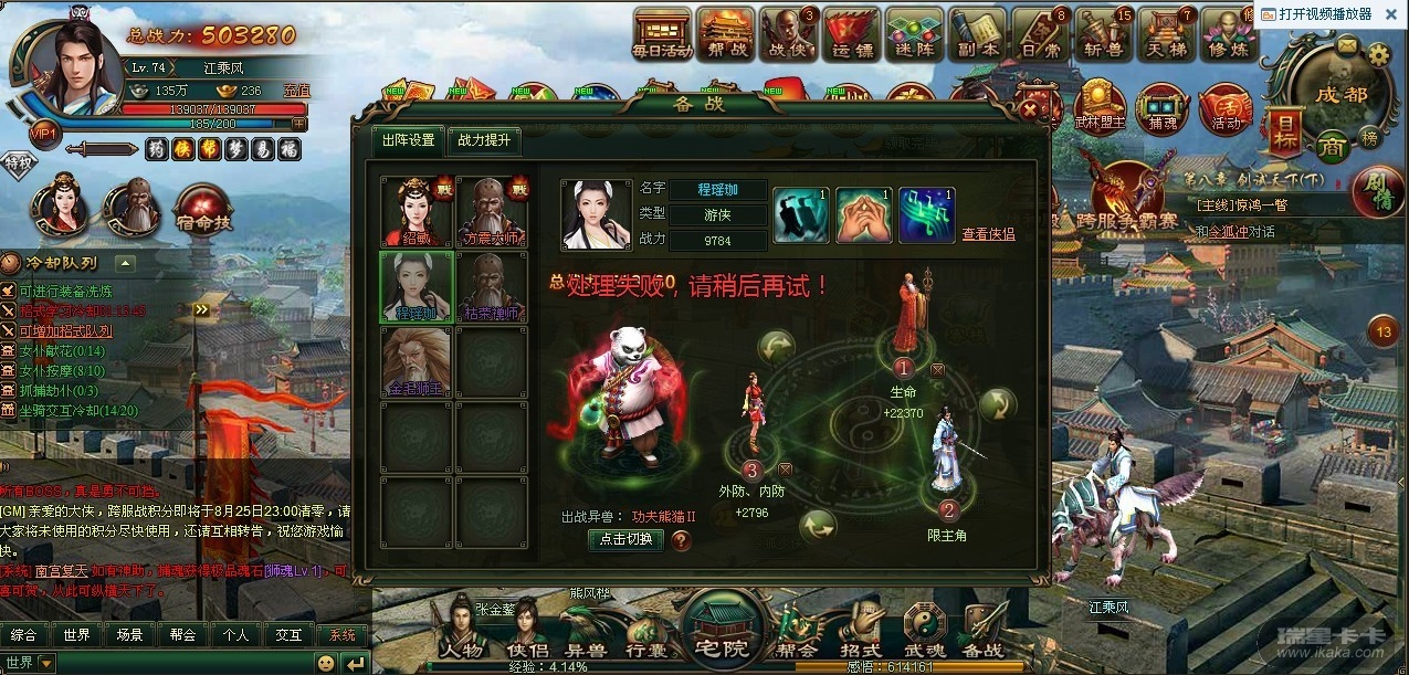 帮主好,自从8月21日合区以后,8月22日我上线的时候。发现游戏中账号的总战斗力由近70万变成了不到50万了,后来发现其他的战斗力没有变,就是侠侣的战斗力由30万变成了15万,很郁闷。开始我以为是系统的问题,最近好多天了。一直还是这个样子没变。而且在备战的界面,侠侣还不能进行替换。一替换就显示错误。请帮主给予解决一下,谢谢