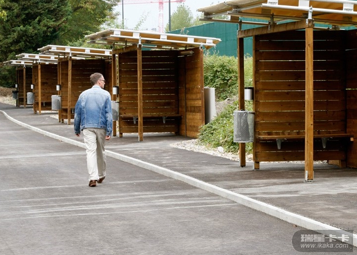 当地时间2013年8月24日,瑞士苏黎世设立的木制开放式、外形像车库的“车震专区”(sex box)。苏黎世的性工作者和顾客将集中到这个小公园里进行交易,该公园于26日正式开园。每个专区都配有卫生间和淋浴。