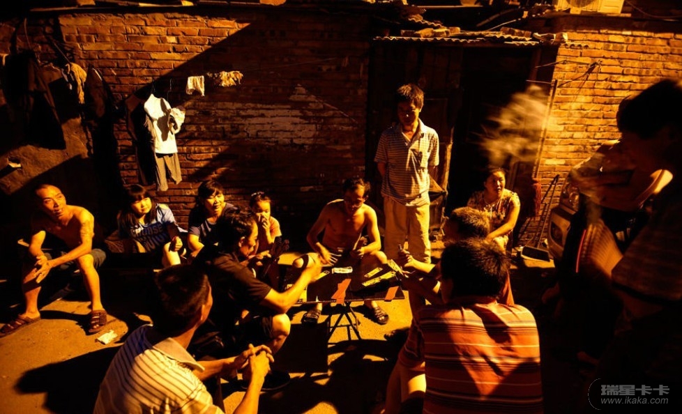 7月16日,北京,城中村里的居民在路灯下打牌纳凉。