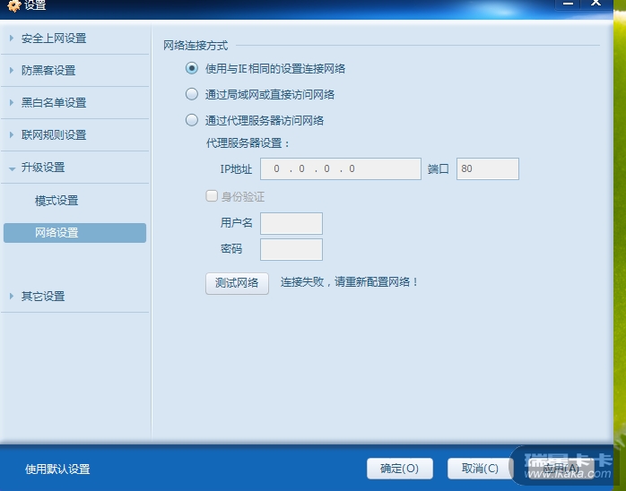 如果可以打开,请在防火墙升级设置中,选择第一项使用与IE相同的设置链接网络即可。