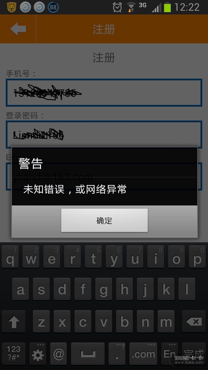 我手机上的瑞星安全软件无法使用云备份. 因为注册时总是显示: "未知错误,或网络异常", 但是WIFI 是打开的.移动数据也是打开的.