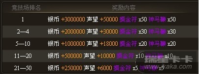 4. 活动内容:在活动结算日时,根据玩家当日的竞技场排名给予相对应的排名奖励。