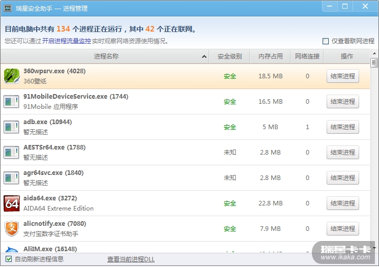 rt,增加流量显示、即时流量、程序打开端口、程序联网目标地址及目标端口信息,方便判断程序或病毒具体情况!!!