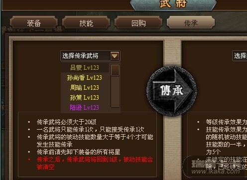 武将不能传承