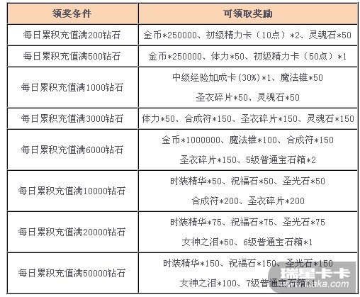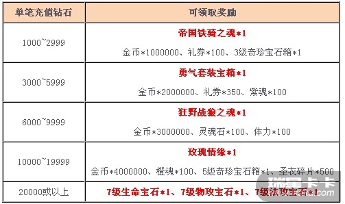 活动时间内,您只需充值任意数量的钻石,即可获得