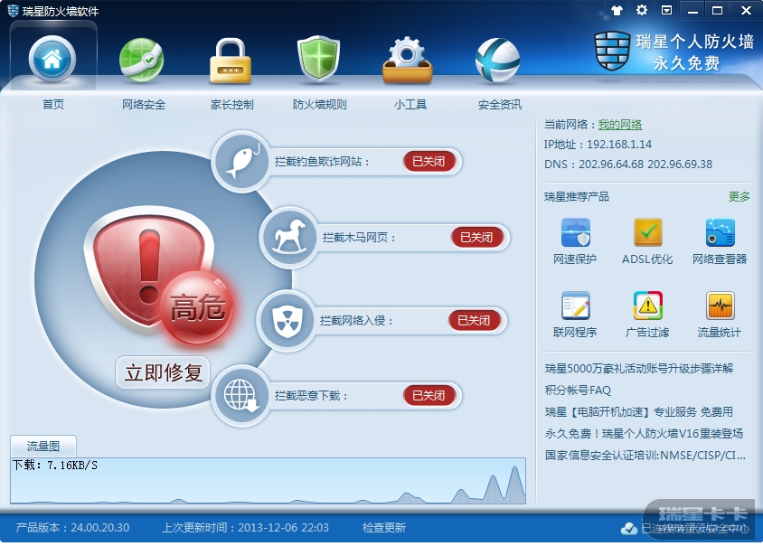 瑞星个人防火墙V16