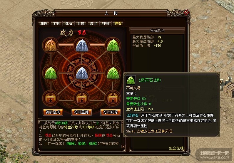 神秘的符石,千百万化的组合,将会为你带更加强力的属性提升。人物达到