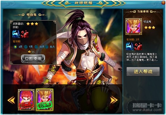 ②吸血鬼皮肤。使用需花费一定元宝,有技能和