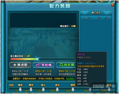 2.累积答题积分可激活徽章,激活徽章可增加气血,防御,精神,攻击,法伤,全抗等珍贵属性。、