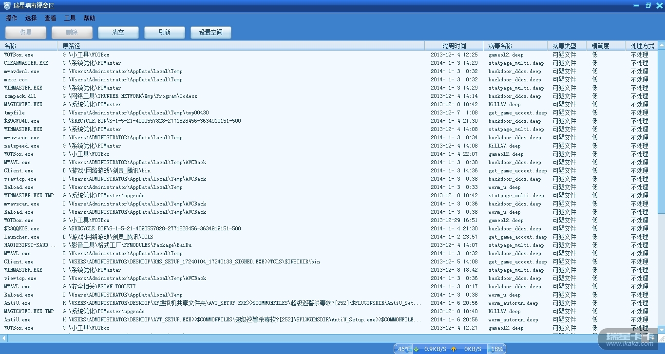 5、坦克世界盒子、剑灵、魔方优化大师、格式工厂等软件存在误报【在隔离区里显示精确度低】
