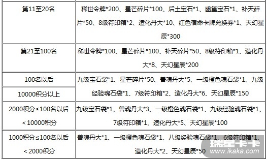 累计充值100000黄金,可获:造化丹大*20、兽魂丹超大*2、九级魂石经验*1、七彩石*5或灵兽之心*10