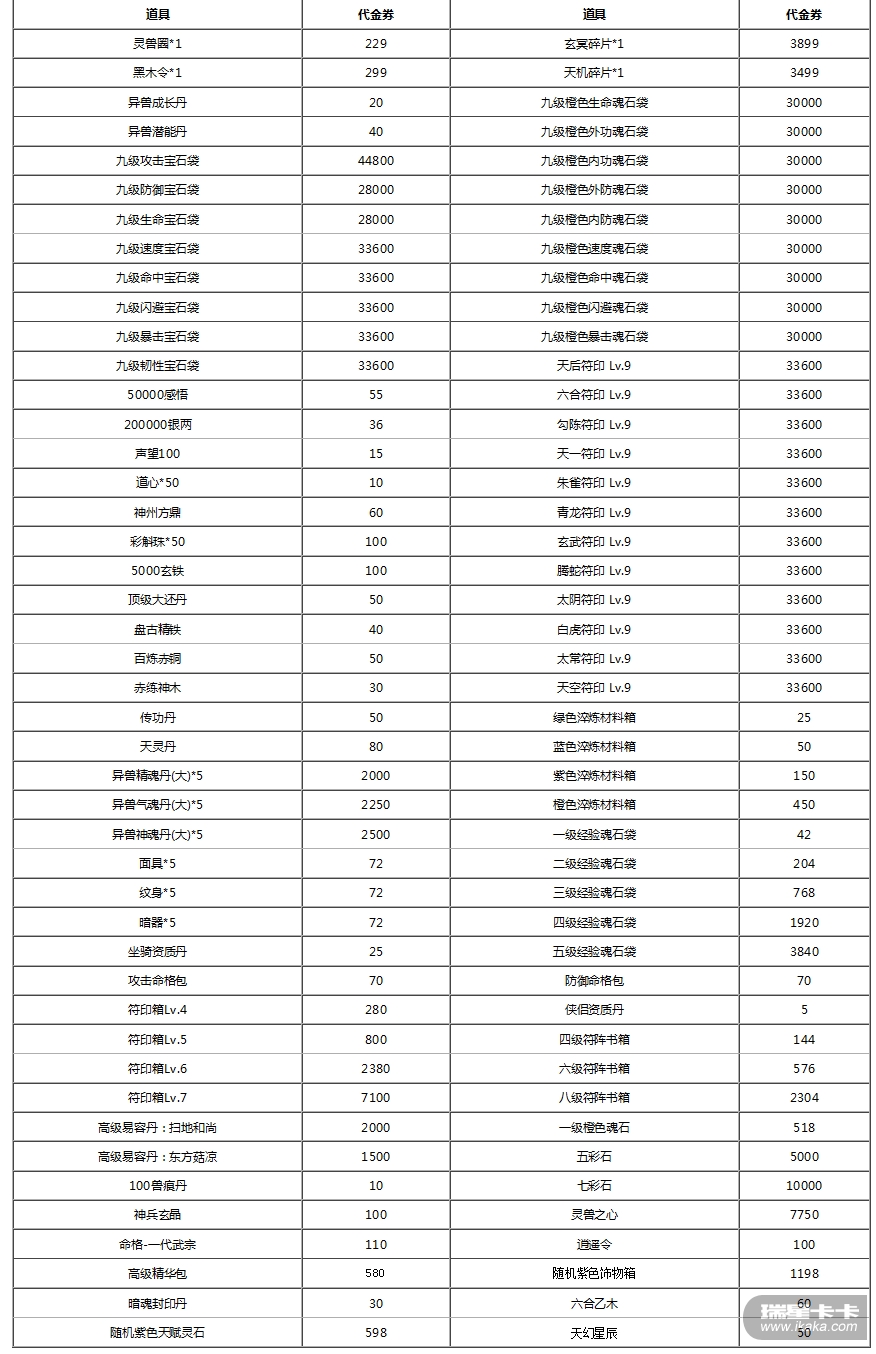 消耗对应数量的通灵珍宝,即可兑换道具商城中没有出售的珍稀道具。