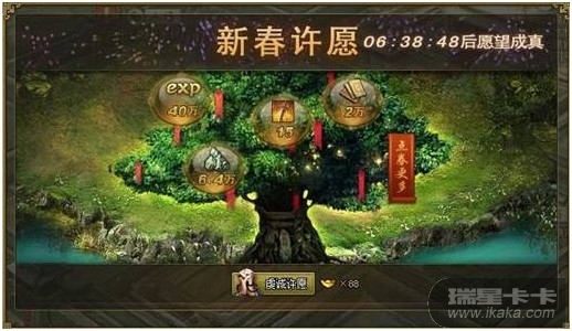 :1月27日0点-2月4日24点,玩家可以在“升级更快、兵器更高、装备更好、点券更多”四种愿望中任选其一,进行许愿;
